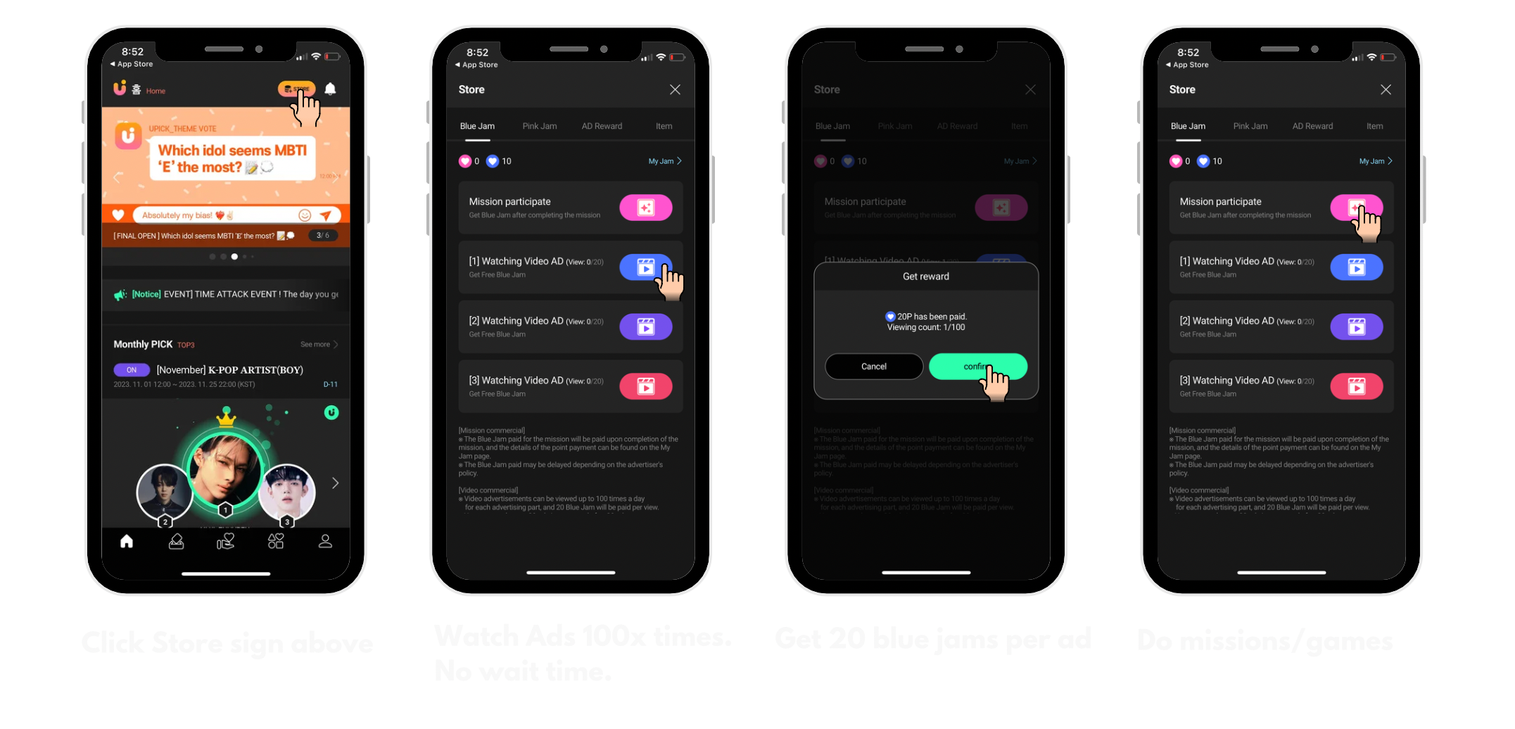 (watch ads, complete missions, get free cash)